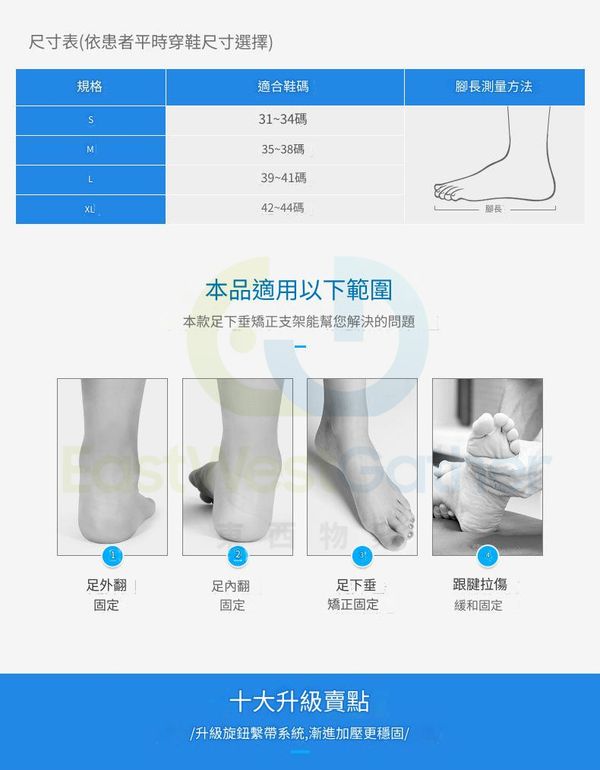 足外翻固定、足內翻固定、足下垂矯正固定、跟腿拉傷緩和固定