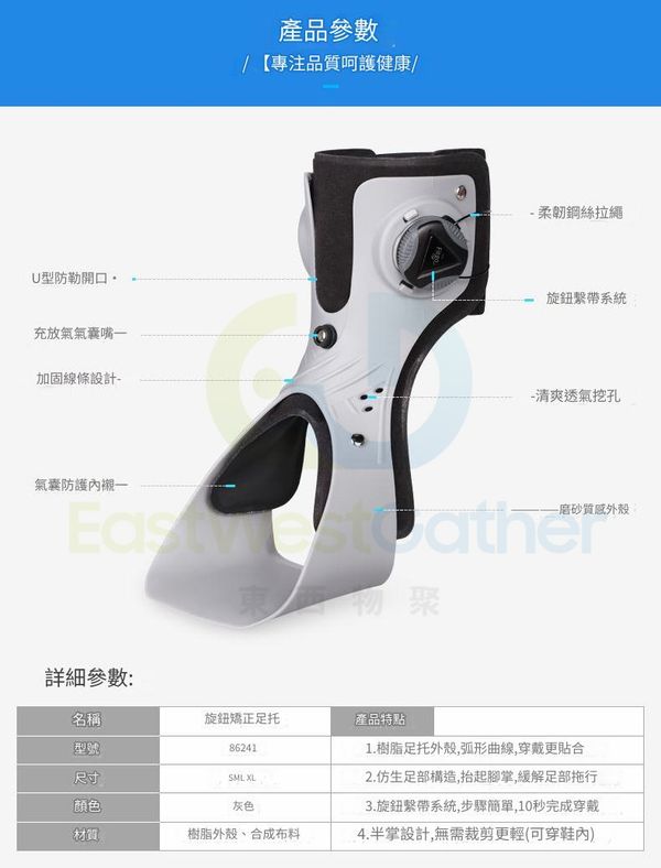 包送貨-足內外翻矯正器 Foot inversion corrector 康復訓練器材陞級旋鈕氣囊款足托(左脚)- XL碼(鞋碼42-44)中風偏癱足部康復鍛煉矯形器 (T22145-12)