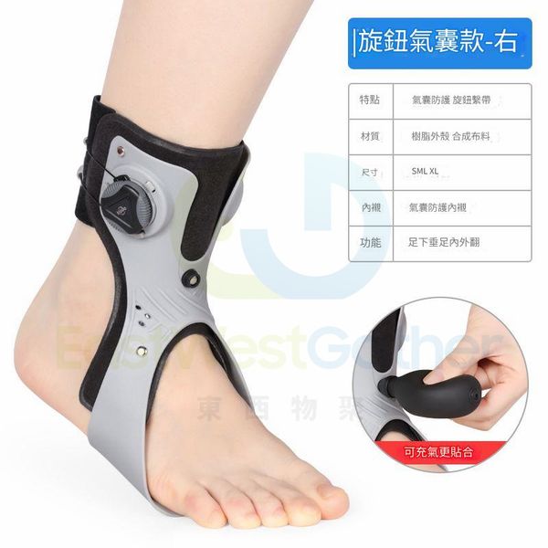 包送貨-足內外翻矯正器 Foot inversion corrector 康復訓練器材陞級旋鈕氣囊款足托(右脚)- M碼(鞋碼35-38)中風偏癱足部康復鍛煉矯形器 (T22145-14)