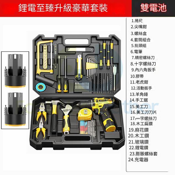 包送貨-多功能家用五金手電鑽electric drill 鋰電至臻升級版豪華套裝+雙電池 充電鑽 電動螺絲批 電轉 萬能鑽 repair tool set家用電器維修工具套裝(T22148-03)