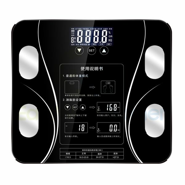包送貨-智能人體電子磅 electronic scale 至臻黑(中文版)-電池 脂肪秤 人體秤 體重磅 體脂計Body fat gauge 健康秤 高精準度 電子秤(T22190-11)