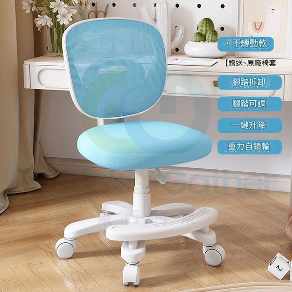 包送貨-可升降兒童學習椅椅子learning chair 藍色-不轉動+脚踏板+重力輪 電腦椅 Computer chair 電競椅 學生凳 辦公椅 寫字椅(T22192-05)