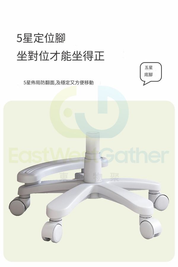 5星定位脚,坐對位才能坐得正,5星佈局防側翻,及穩定又方便移動