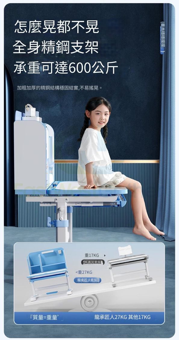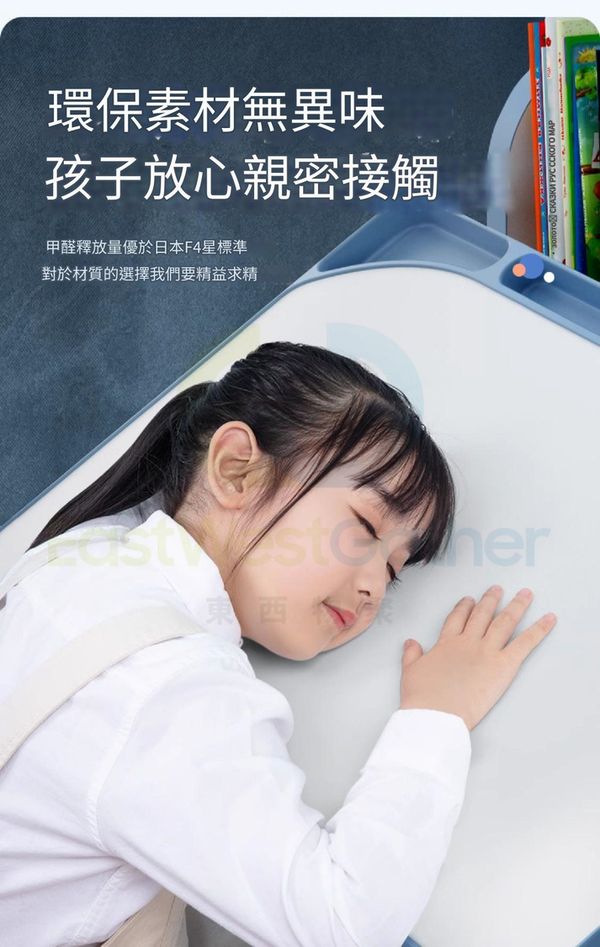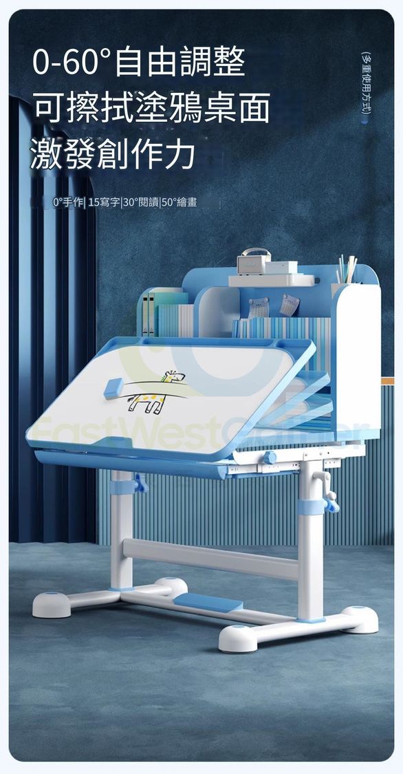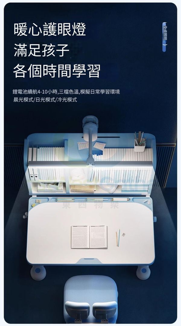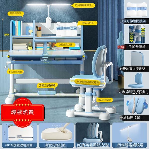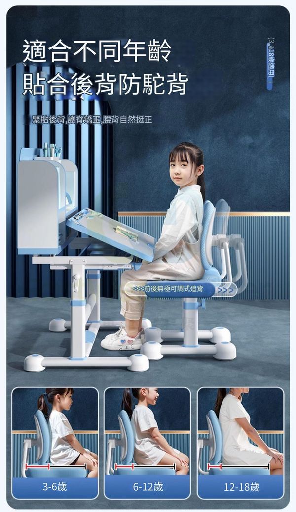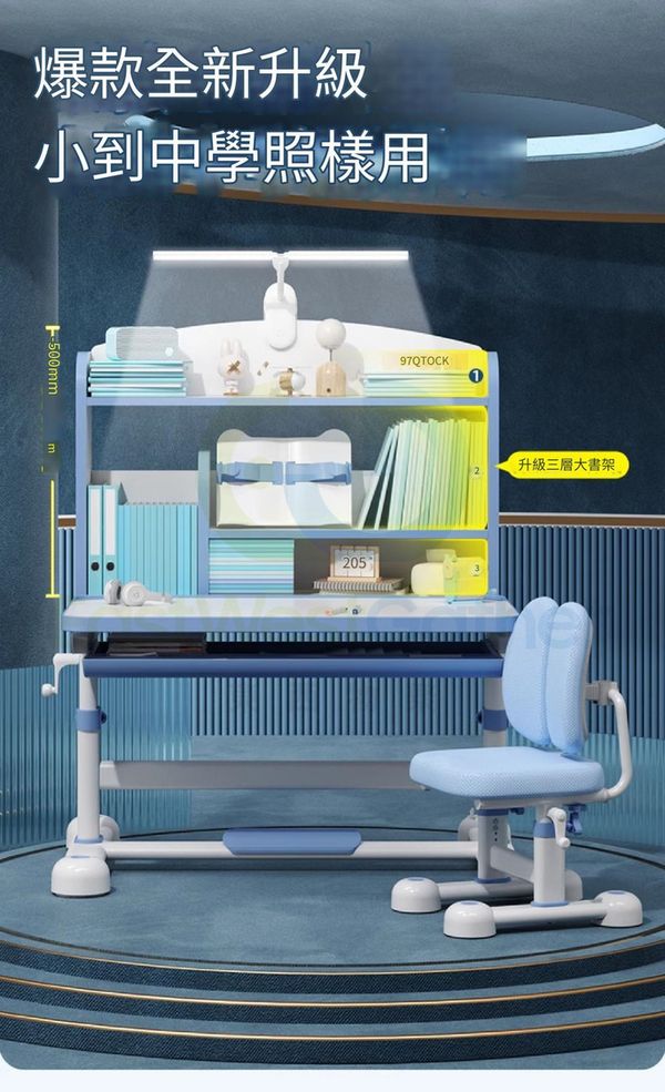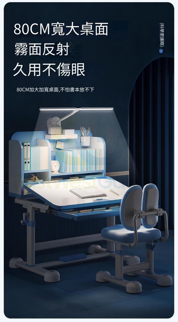 包安裝送貨-可升降兒童學習枱椅組合套裝children's study desk and chair 旗艦藍:追背椅/抽屜/椅套/兒童燈/矯姿器/閱讀架 學生寫字枱椅(T22193-07)
