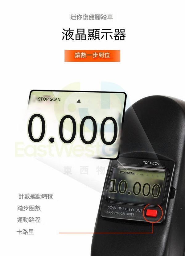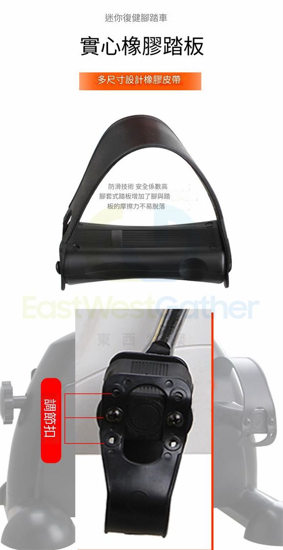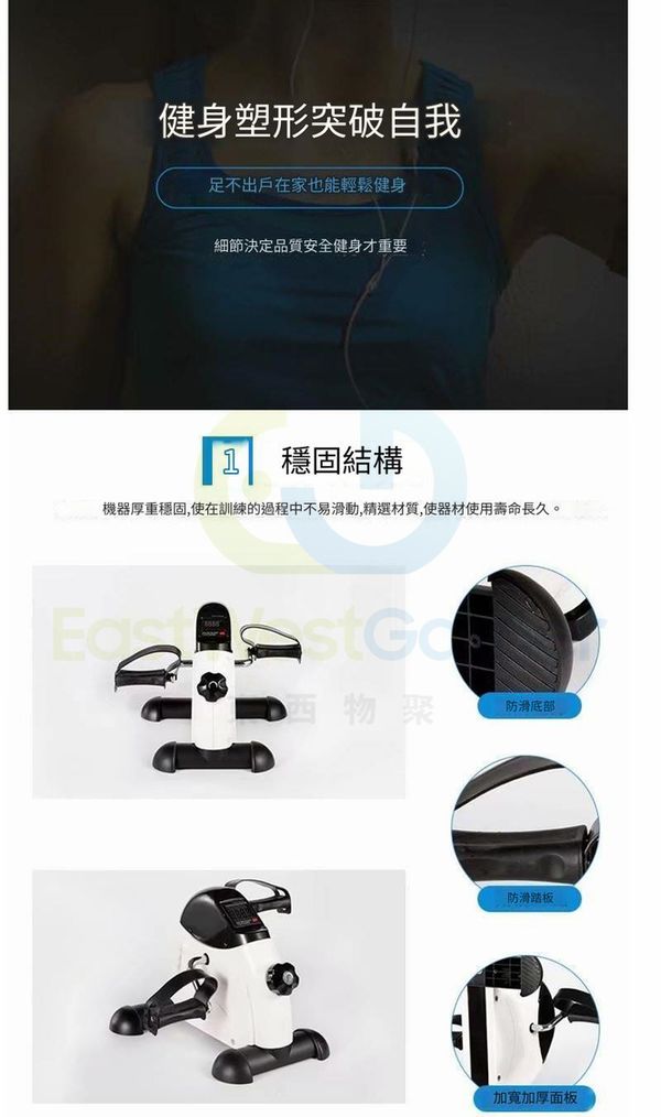 無極變阻,調節按鈕。 根據個人能力來調節脚踏機的阻力和轉速,在鍛煉耐力的同時,大量消耗脂肪,安全健身。