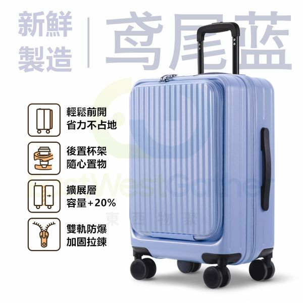 包送貨-多功能行李箱 suitcase 24寸-新一代(可擴容+雙層防爆拉鍊+杯架+掛鉤)-【鳶尾藍】 前開口可擴展行李喼 旅行喼 旅行箱 拉桿箱 結婚密碼箱 登機皮箱(T22247-14)