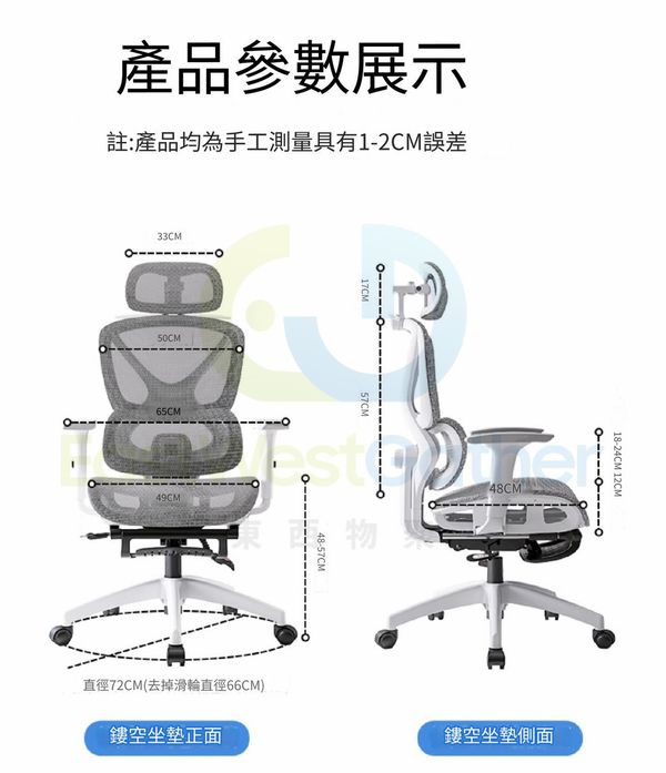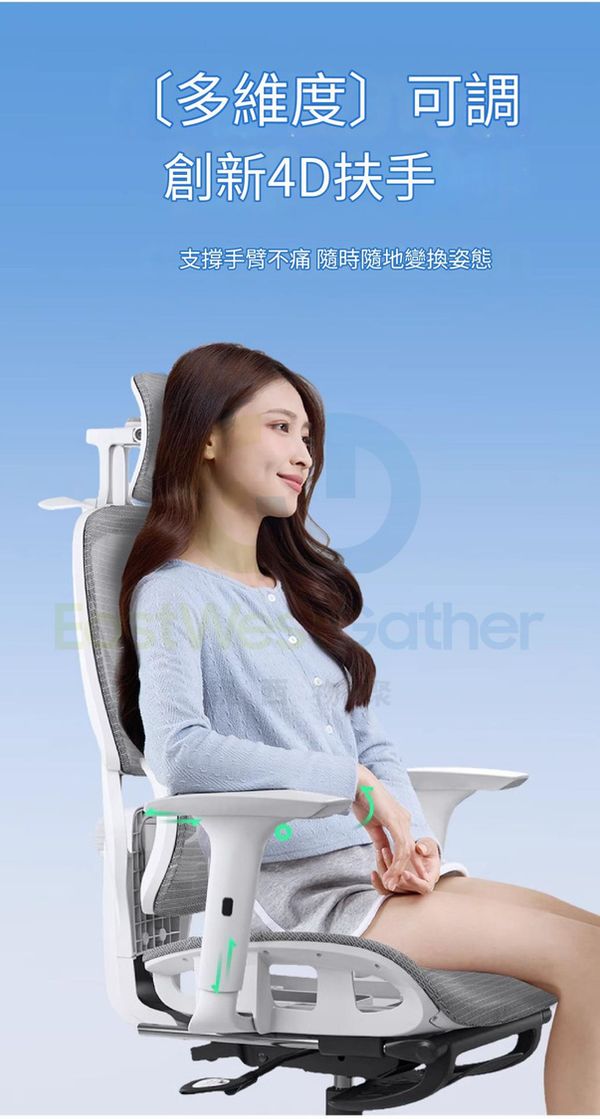 包送貨-人體工學護腰電腦椅Computer Chair 辦公椅 [Pro雲白]-彈力鏤空坐墊-6D攆腰-無擱脚-四級防爆氣杆-鋁合金脚-旋轉升降扶手 電競椅 學習椅(T22253-10)