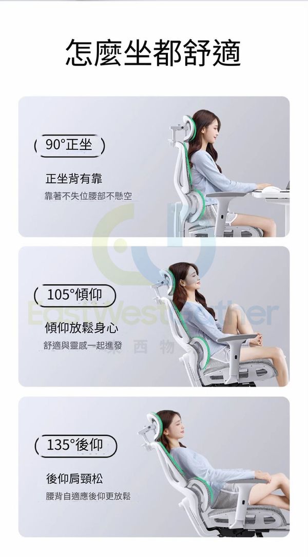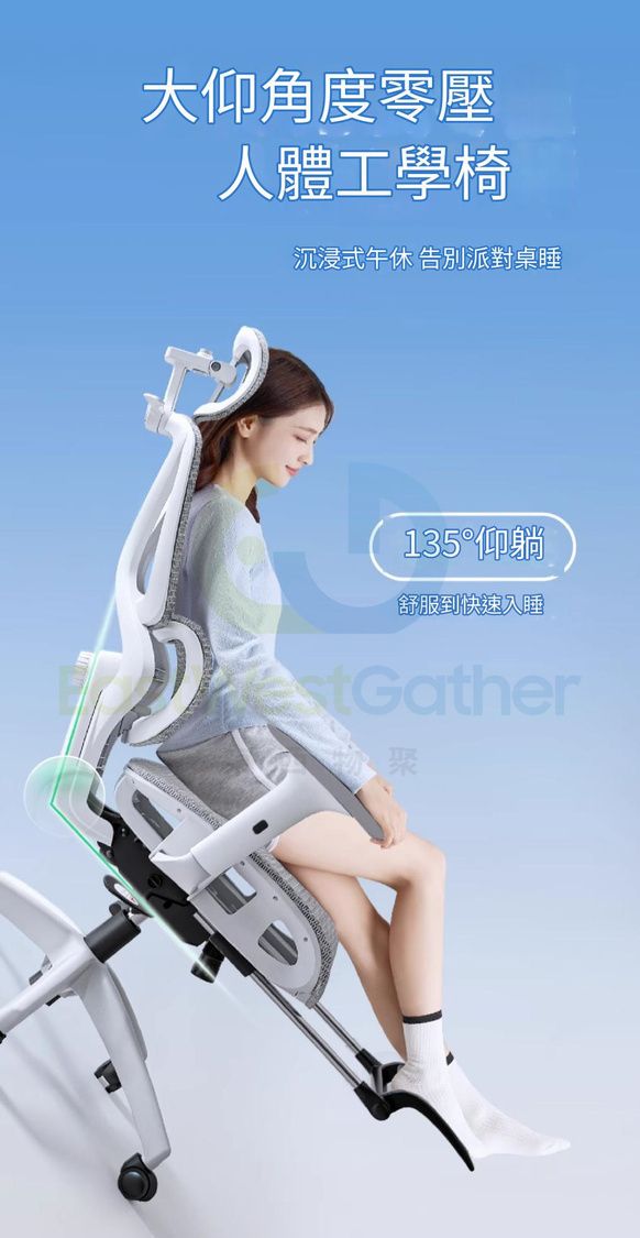 大仰角度零壓人體工學椅,沉浸式午休,告別趴臺睡