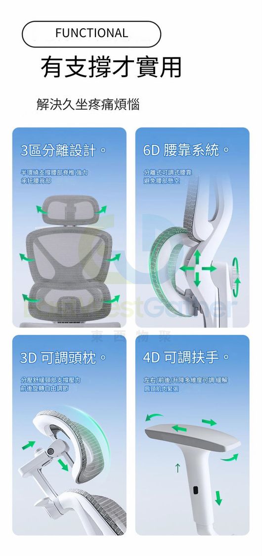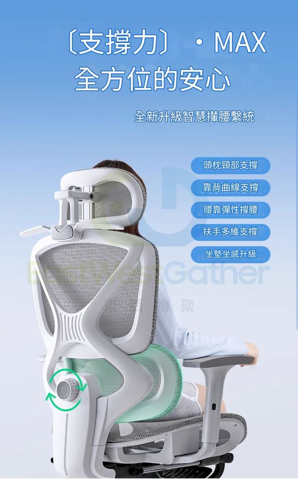 自我調整6D攆腰設計,a分離懸浮升降腰靠