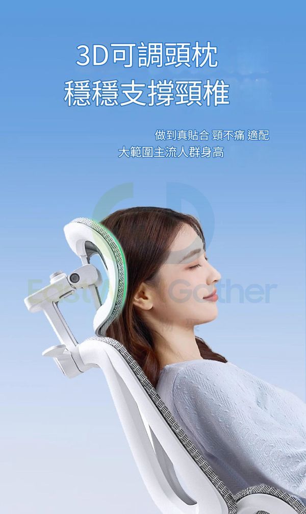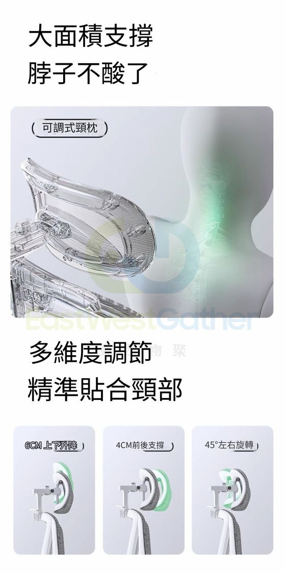 3D可調頭枕,穩穩支撐頸椎,做到真貼合,頸不痛,適配大範圍主流人群身高