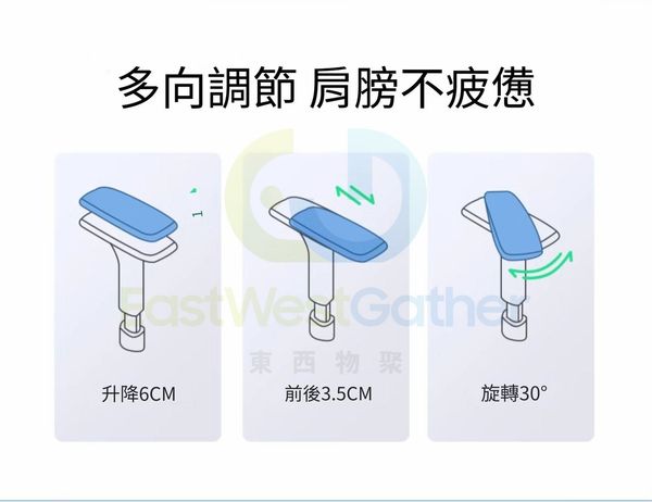 多維度可調創新4D扶手,支撐手臂不痛,隨時隨地變換姿態