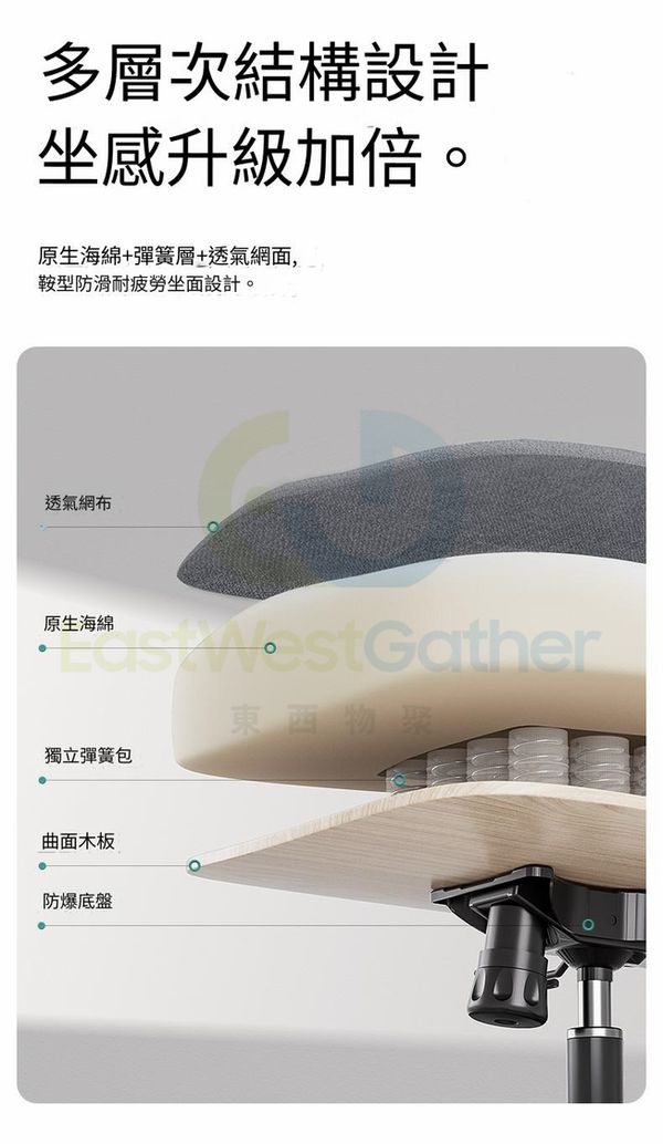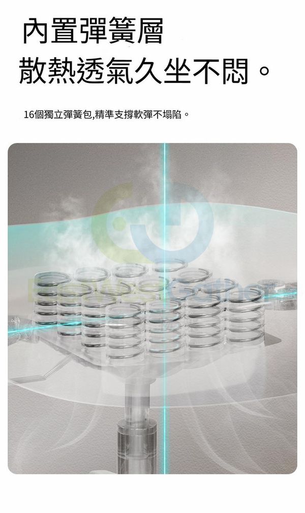 16個獨立彈簧包分區均衡釋壓。內寘彈簧層散熱透氣久坐不悶。