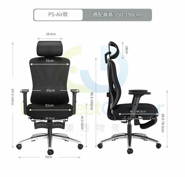 黑白調P5人體工學椅電腦椅家用舒適久坐辦公椅學習椅子電競座椅