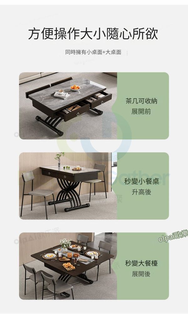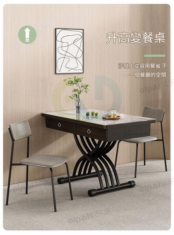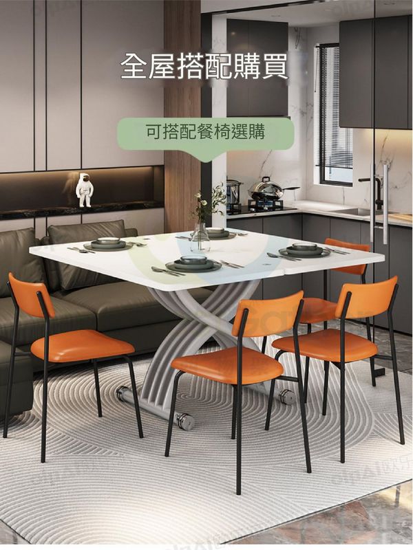 可移動升降茶几餐桌兩用小戶型方形家用多功能折疊岩板伸縮秒變桌