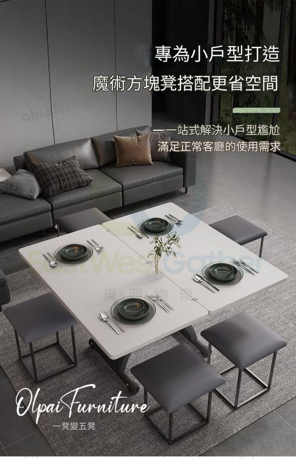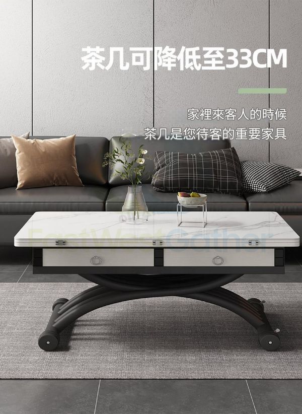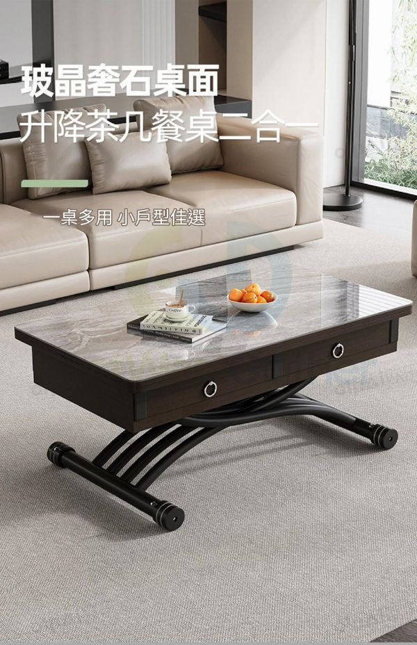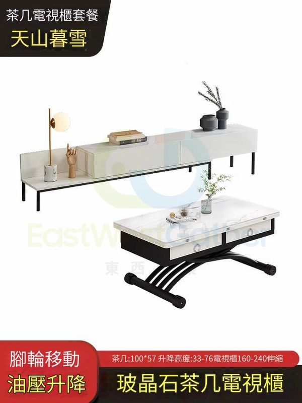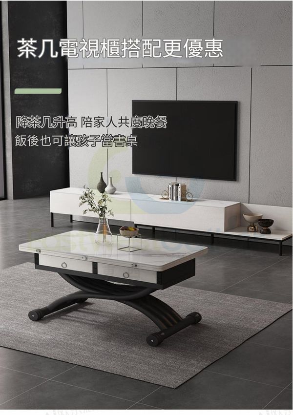 包安裝送貨-小戶型家用多功能摺疊升降茶几 Elevating coffee table 【電視櫃套餐】100玻晶奢石茶几+電視櫃(天山暮雪) 二合一餐枱 升降餐枱 兩用餐檯 餐桌(T22305-32)