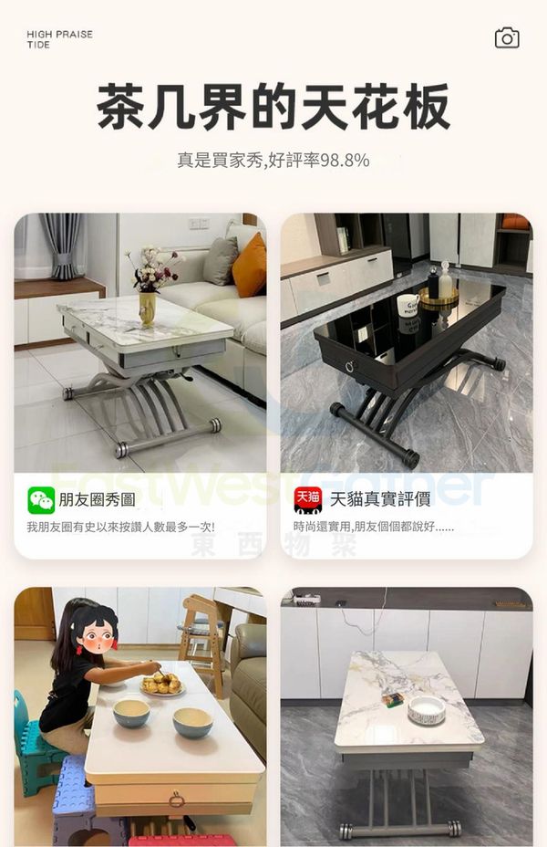The coffee table can be lowered to 33CM, and it is an important piece of furniture for entertaining guests at home.