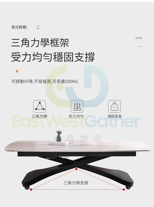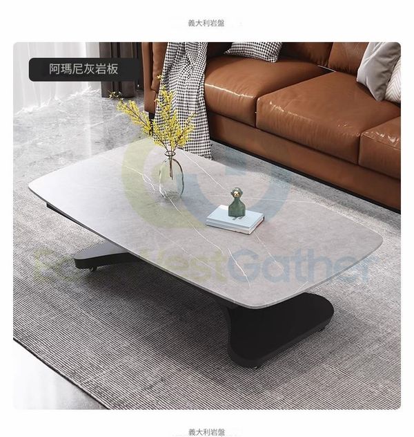 包送貨-現代簡約可移動升降茶几 Elevating coffee table 120*70[阿玛尼灰+黑腳] 餐枱兩用二合一升降餐枱dining table 多功能餐檯 輕奢餐桌(T22306-06)