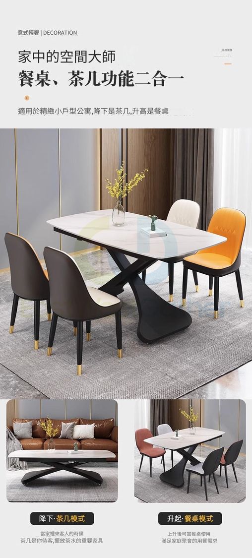 兩用二合一茶几岩板現代簡約小戶型可移動升降輕奢多功能家用餐桌