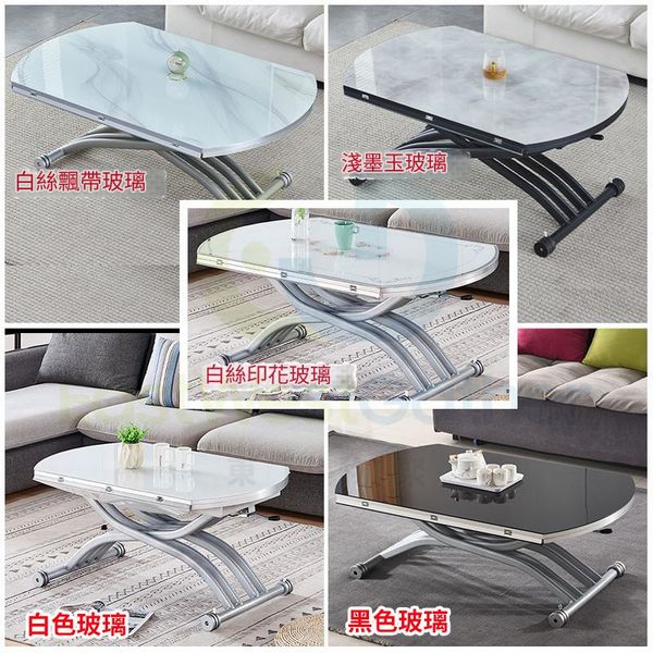 包送貨-小戶型伸縮圓形升降茶几 Elevating coffee table 105cm 八腿+側拉+抽屜 玻璃 二合一升降餐枱 dining table 多功能餐檯 餐桌 茶桌(T22307-19)