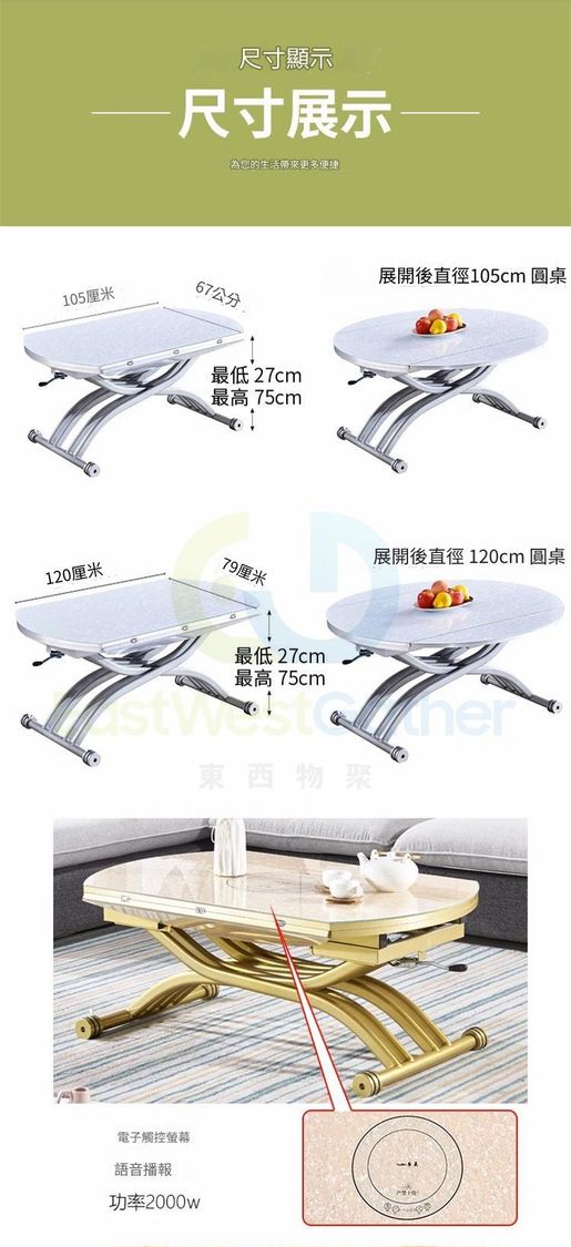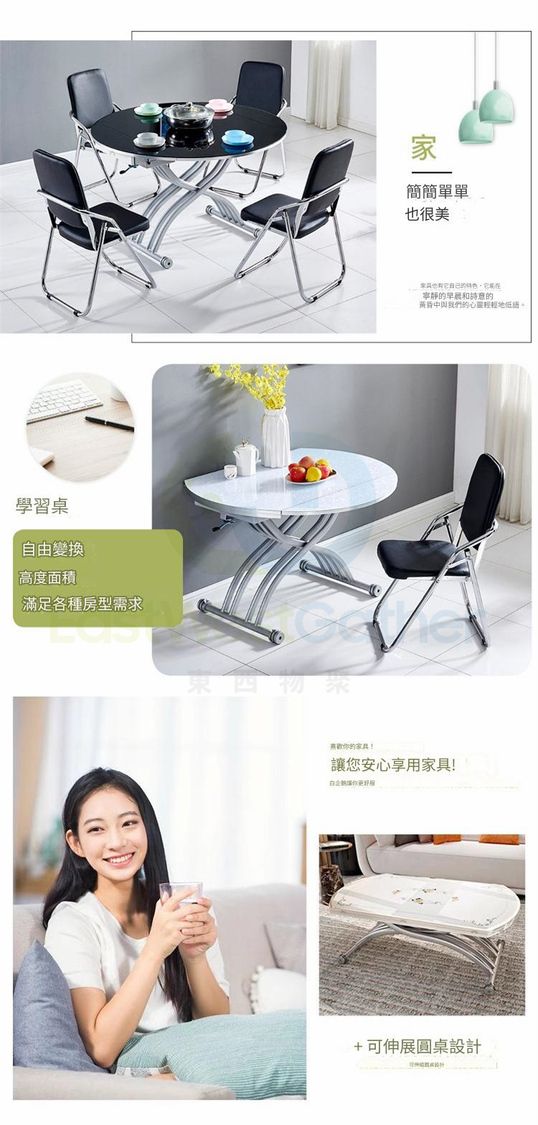 包送貨-小戶型伸縮圓形升降茶几 Elevating coffee table 120cm 新款岩石+側拉+抽屜 二合一升降餐枱 dining table 多功能餐檯 餐桌 茶桌(T22307-24)