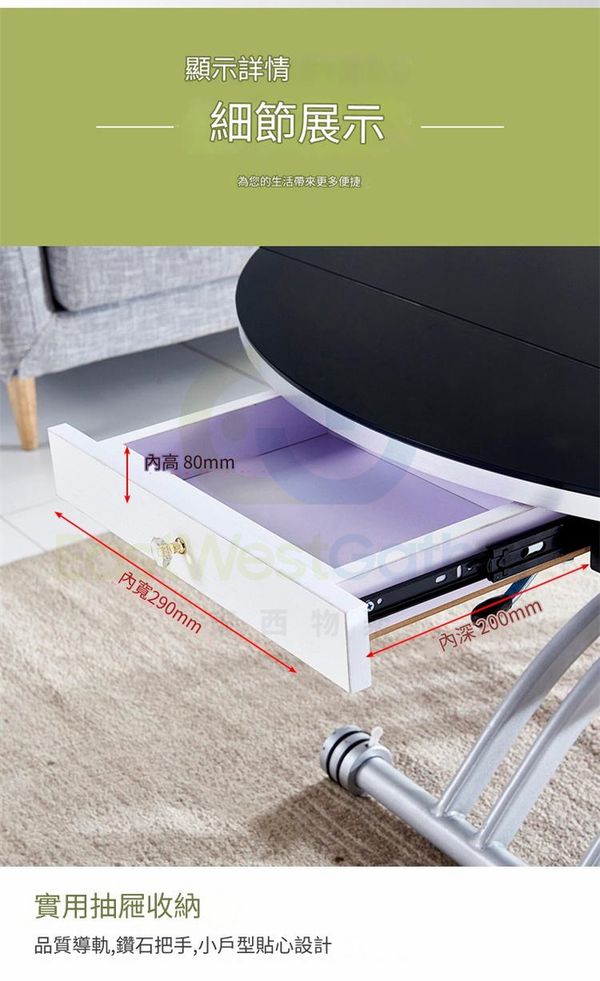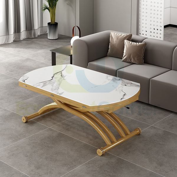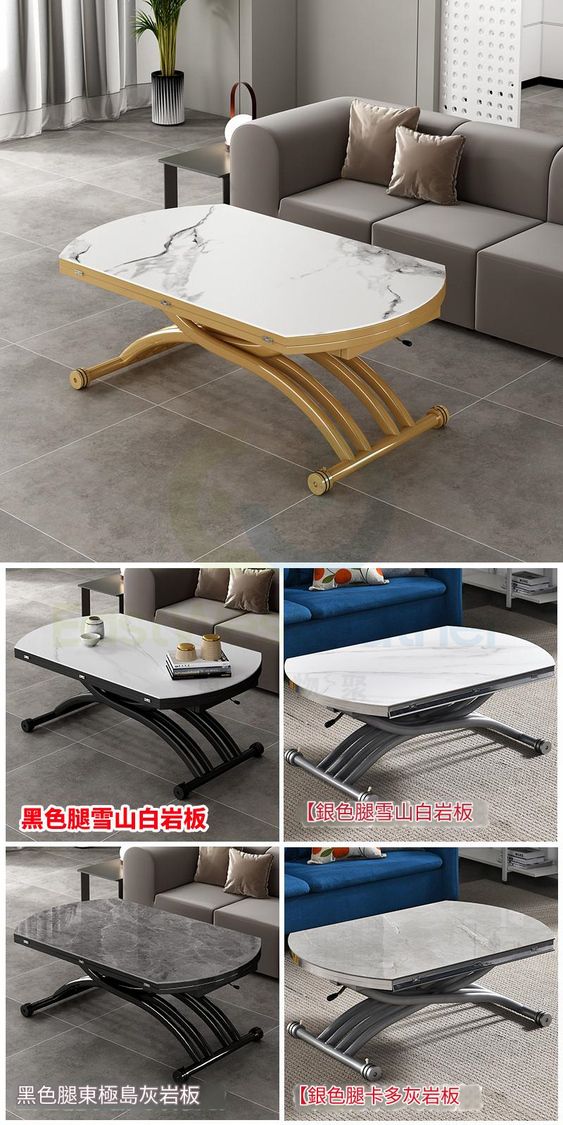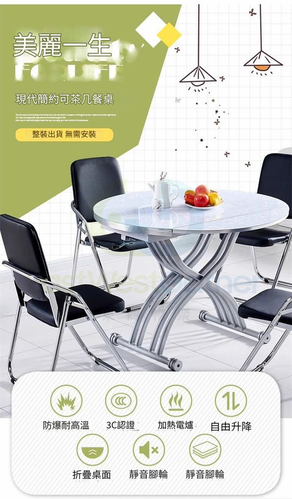包送貨-小戶型伸縮圓形升降茶几 Elevating coffee table 120cm 金腿+雪山白 岩板+電磁爐+抽屜 二合一升降餐枱 dining table (T22307-34)