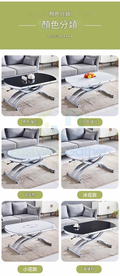 小戶型升降茶几餐桌兩用簡約現代多功能折疊伸縮圓形鋼化玻璃茶桌