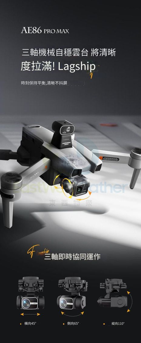 8K-level high-definition lens, three-axis brushless gimbal, clear and delicate, supports 90° remote control angle.