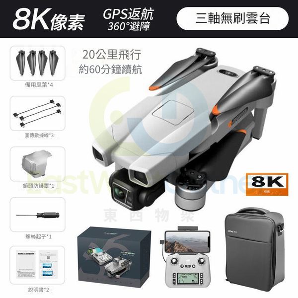 包送貨-專業級超高清無人機 Drone 航拍機 Aerial photography 【灰色】8K+20km圖傳+自動返航-四電池實測約240分鐘 遙控飛機 飛行器(T22313-08)