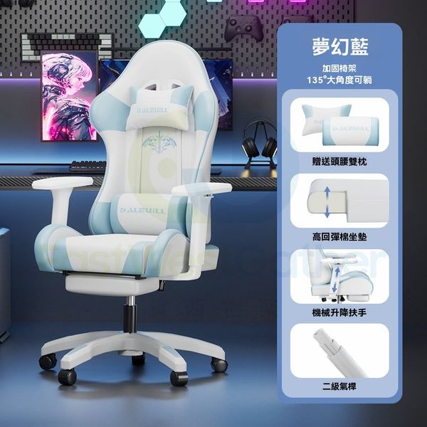 包送貨-遊戲直播電競椅 eSports chair 電腦椅 computer chair 標準款-夢幻藍+擱脚-尼龍脚 辦公椅 遊戲椅子 學習椅 寫字樓椅子(T22358-10)