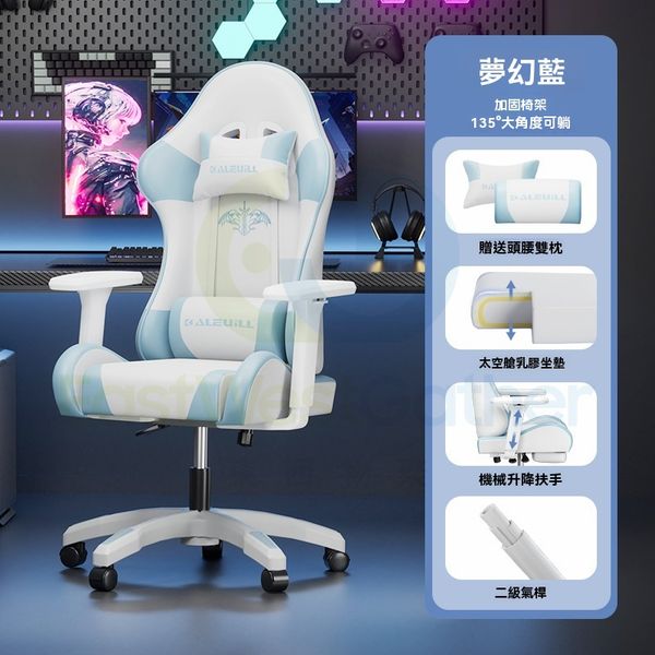 包送貨-遊戲直播電競椅 eSports chair 電腦椅 computer chair 豪華款-夢幻藍+超纖皮+乳膠坐墊-鋼制脚 辦公椅 遊戲椅子 學習椅 寫字樓椅子(T22358-20)