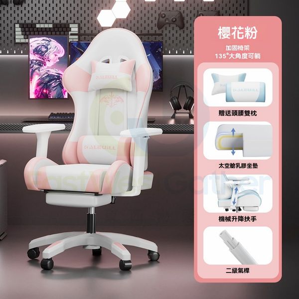 包送貨-遊戲直播電競椅 eSports chair 電腦椅 computer chair 豪華款-櫻花粉+擱脚+超纖皮+乳膠坐墊-尼龍脚 辦公椅 遊戲椅子 學習椅 寫字樓椅子(T22358-31)