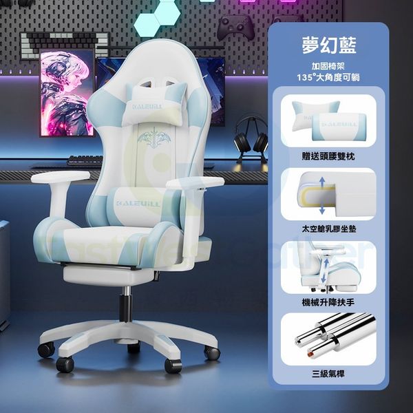 包送貨-遊戲直播電競椅 eSports chair 電腦椅 computer chair 尊享款-夢幻藍+擱脚+乳膠坐墊+3級氣杆-尼龍脚 辦公椅 遊戲椅 學習椅 寫字樓椅子(T22358-46)
