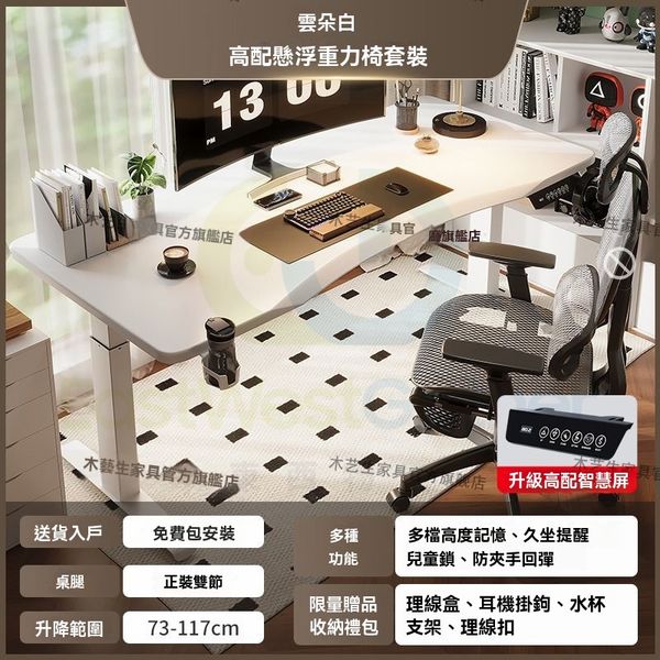 包送貨-智能電動升降電腦枱 Computer desk 電競枱 E-sports desk 【高配AIR懸浮椅套裝】單電機-雲朵白- 180*70cm 辦公枱 遊戲枱 學習枱(T22399-30)