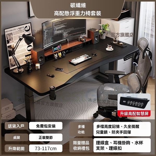 包送貨-智能電動升降電腦枱 Computer desk 電競枱 E-sports desk 【高配AIR懸浮椅套裝】單電機-碳纖維- 180*70cm 辦公枱 遊戲枱 學習枱(T22399-35)