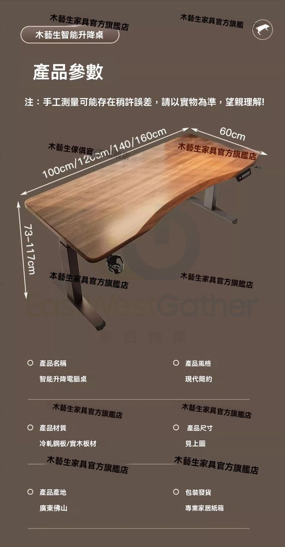 73cm~117cm的可調節升降高度,高配全能版控制器記憶高度,久坐提醒。