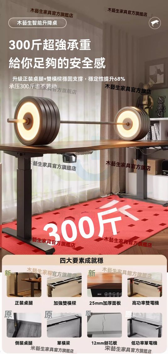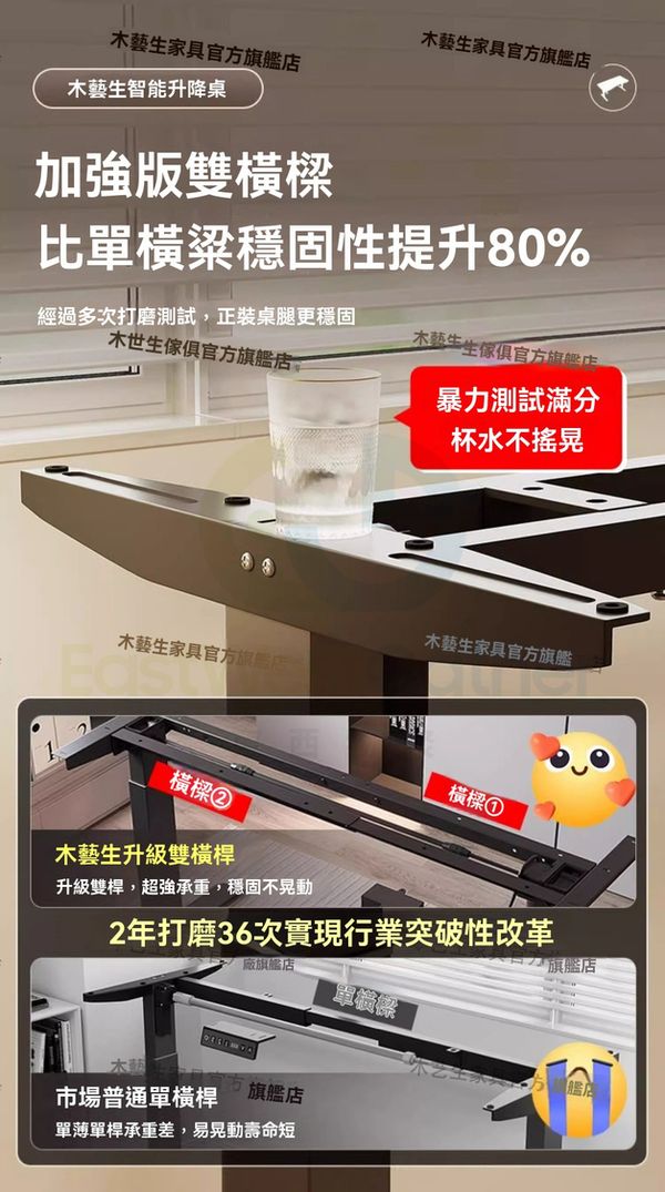 正裝桌腿承重更强大,壓力再大也不怕。 加强版雙橫樑設計,穩定性提升80%,拒絕單橫樑。
