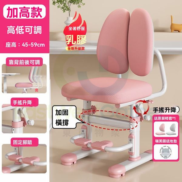 雙背手搖升降加高款-粉色-【加固橫撐】【乳膠】 兒童學習椅 Children's learning chair 電腦椅 可升降調節矯正坐姿寫字椅 學生椅 辦公椅 靠背椅(T22597-03)