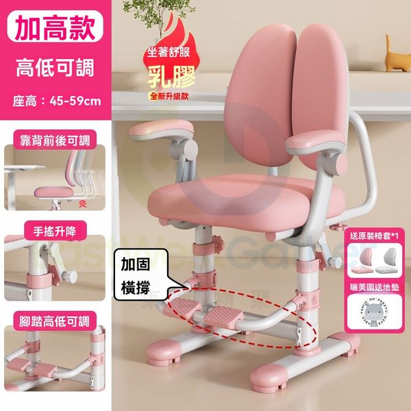 粉色-帶扶手加高款-手搖升降可調脚踏【乳膠】 兒童學習椅 Children's learning chair 電腦椅 可升降調節矯正坐姿寫字椅 學生椅 辦公椅 靠背椅(T22597-16)