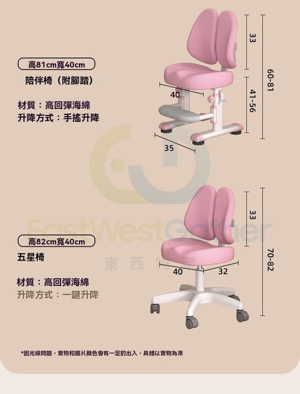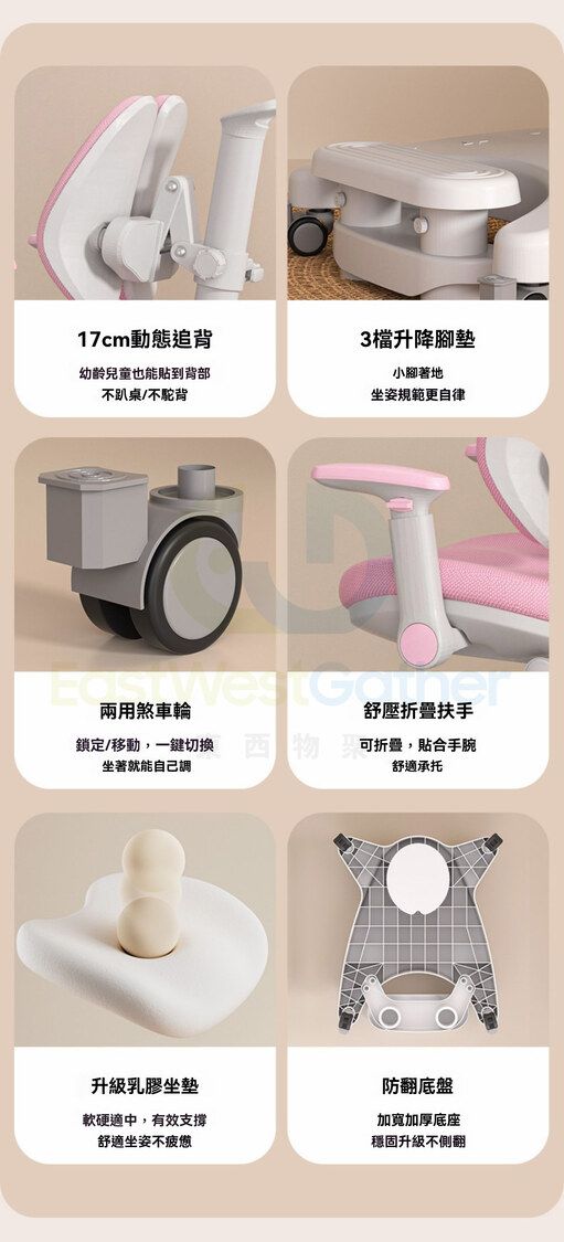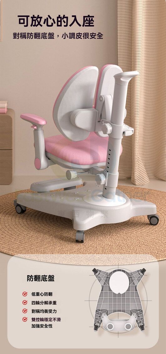 3檔升降腳墊,小脚著地,坐姿規範更自律。