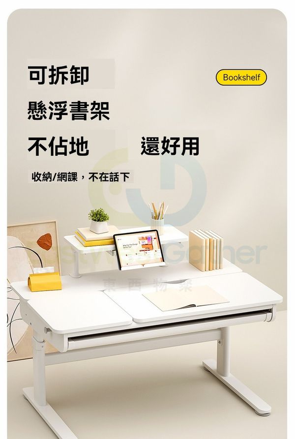 包送貨-兒童學習枱椅套裝 電腦椅 電腦枱 【高端橡膠木】大抽屜/書架/可調桌面+正姿椅-灰色-120x65x82cm 學生枱椅組合 可升降課桌椅套裝 兒童枱 兒童椅子 書枱(T22612-60)