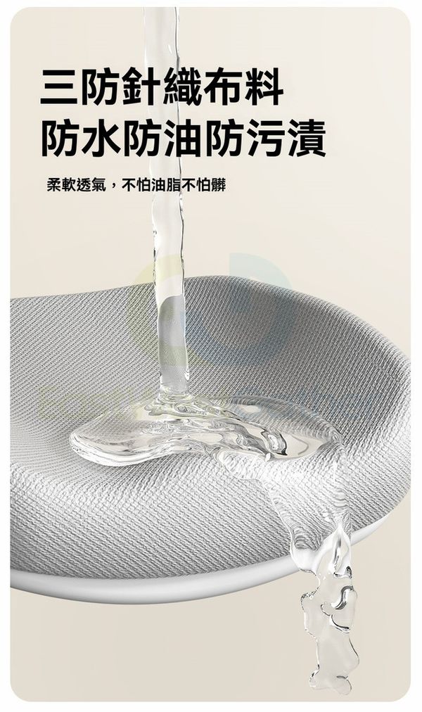 三防針織面料防水防油防污漬,柔軟透氣,不怕油脂不怕髒。