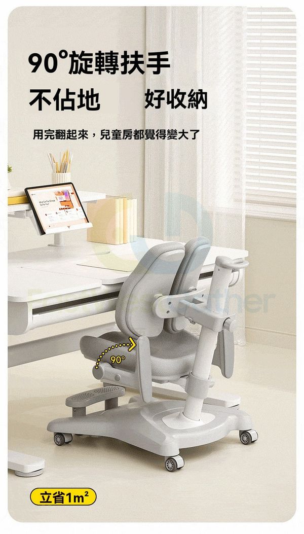 90°旋轉扶手不占地,好收納,用完翻起來,兒童房都感覺變大了。