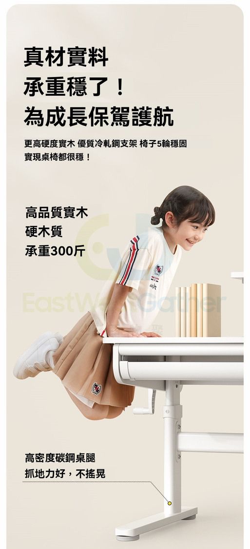 進口橡膠木,更高硬度實木+優質冷軋鋼支架+椅子5輪穩固,堅固耐用,實現桌椅都很穩!