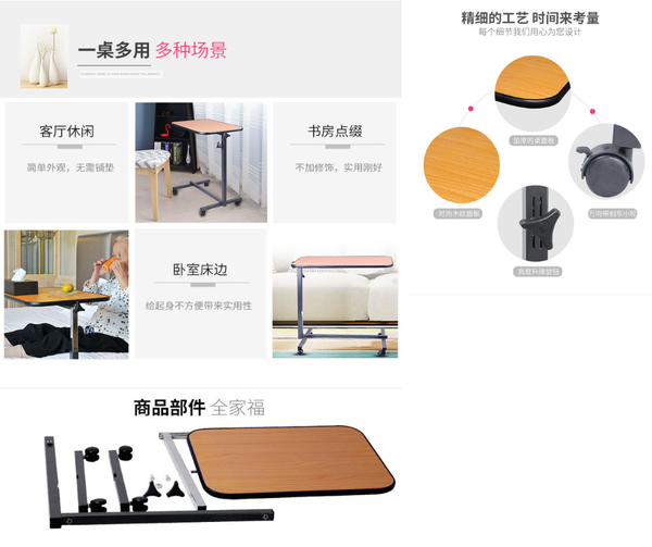 可移動床邊桌多功能折疊升降床邊餐桌可擕式老人護理傢俱偏癱臥床 w7103