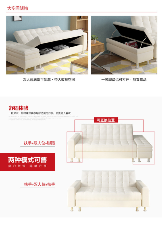 日式皮藝沙發床多功能可儲物折疊沙發床小戶型客廳臥室書房小沙發 w7188