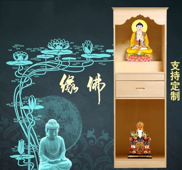 現代中式實木財神菩薩牌位神龕佛龕佛櫃立櫃帶門 土地公婆供台櫃 w7240