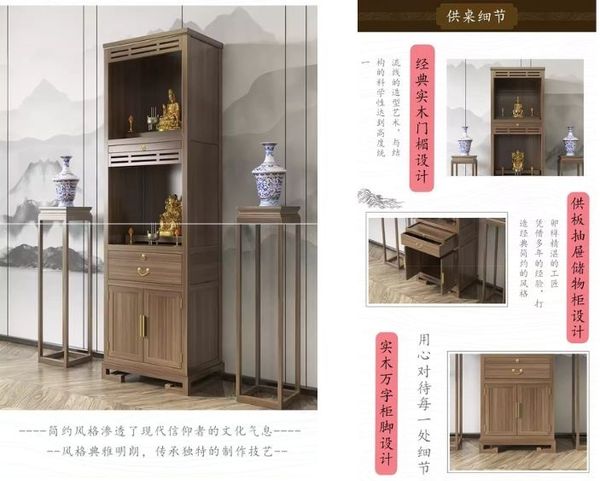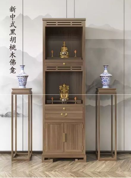 實木家用兩層佛龕佛櫃佛台立櫃供桌簡約新中式祖先神台神龕 w7284