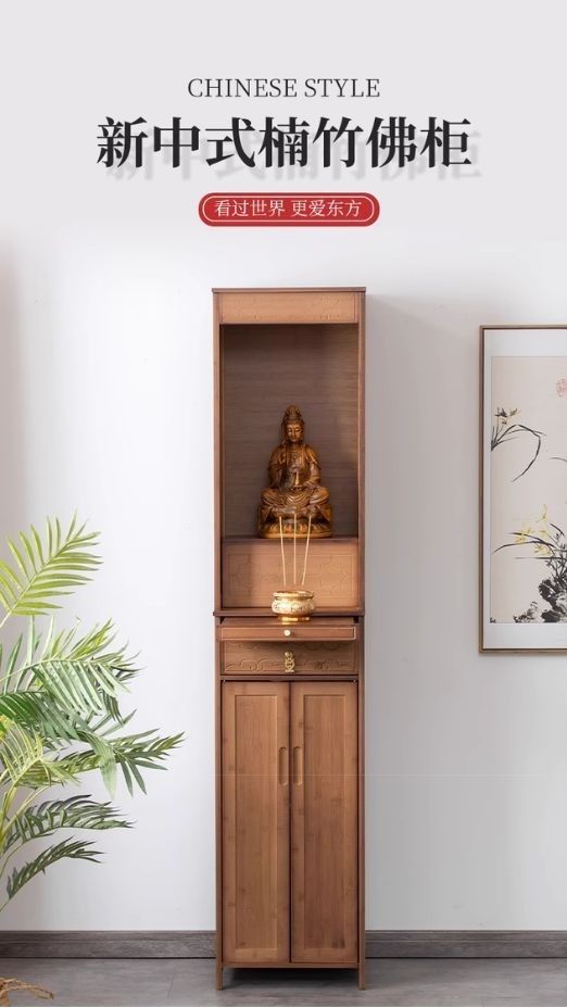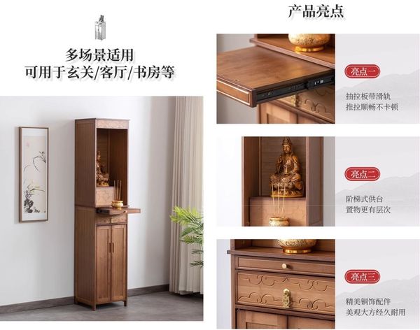 佛龕立櫃供台家用神龕佛像財神爺供奉桌新中式佛台櫃帶門神台供桌 w7318