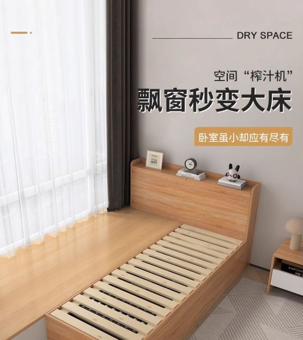 定制飄窗拼接床櫃榻榻米床省空間窗臺延伸銜接一半飄窗一半床實木 w7475