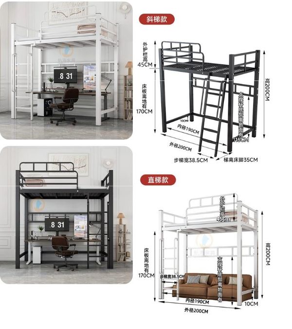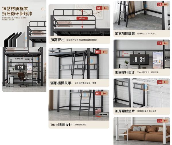 港澳北歐省空間小戶型公寓上床下桌鐵藝高架床單上層鐵藝床 w7610